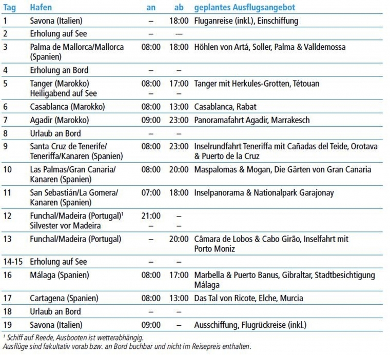 Genießen Sie die außergewöhnliche Schönheit der atlantischen Küste mit ihren Inseln und verbinden Sie die heimischen Weihnachtgefühle mit sonnengeküssten Urlaubsfreuden. An Bord von MS ARTANIA erleben Sie eine einzigartige Festtagsreise voll maritimer Höhepunkte. Mit dem wunderbarsten und größtem Feuerwerk über der Insel Madeira kann der Start in das neue Jahr nicht schöner sein!