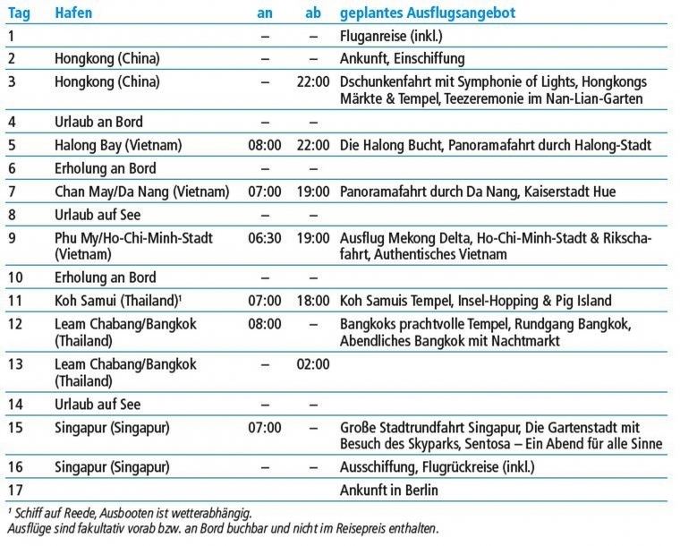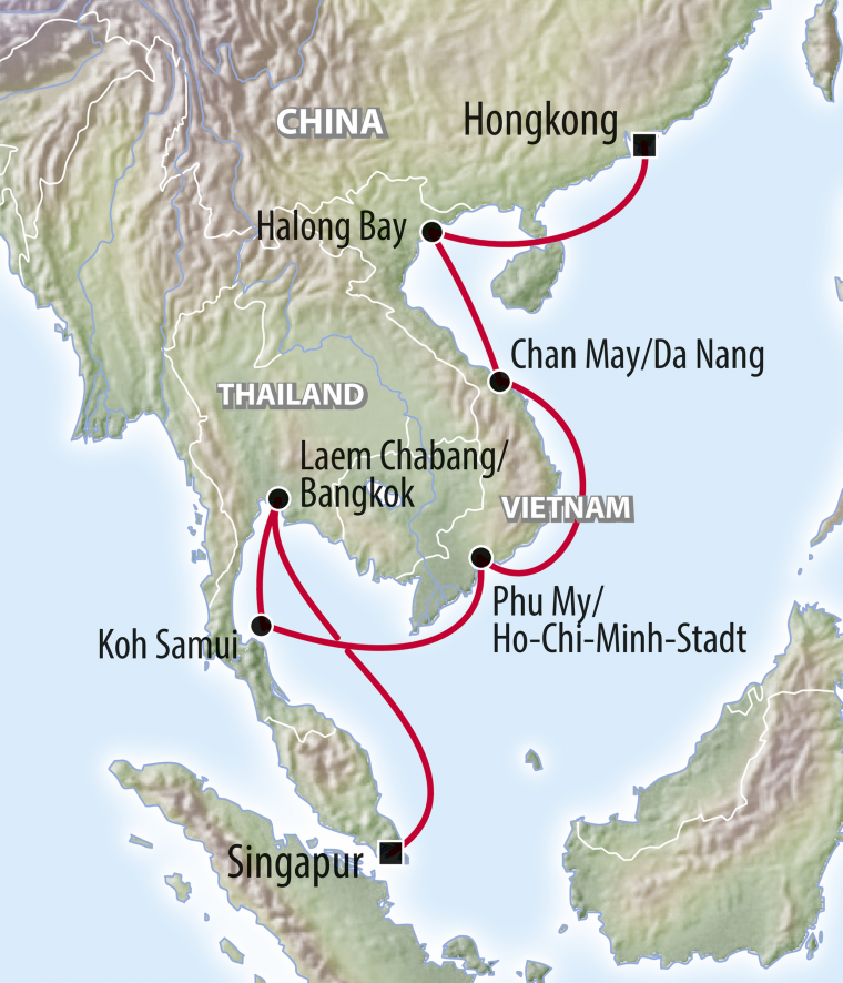 besonders langer Aufenthalt in Hongkong, Bangkok & Singapur